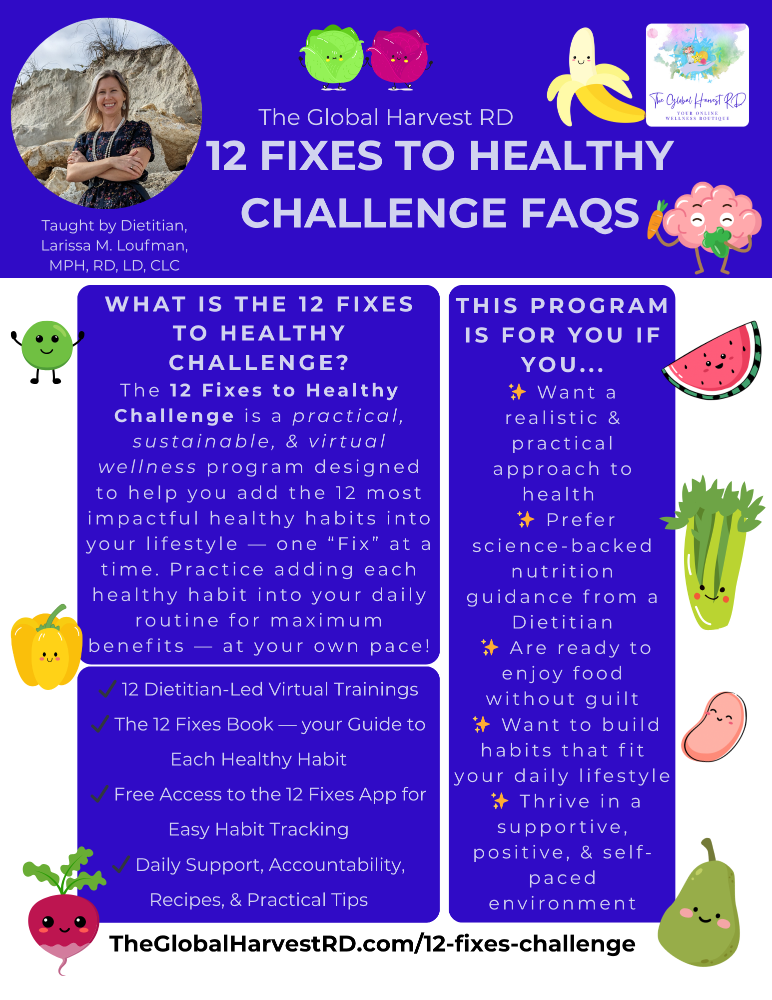 Hello! I’m Larissa — a Registered Dietitian, Behavioral Health Researcher, Population Health Specialist, and Founder of The Global Harvest RD. My journey in the health and wellness space spans over 15 years and is rooted in a deep passion for blending science, practical knowledge, and creativity to empower each person to live their best, healthiest life.