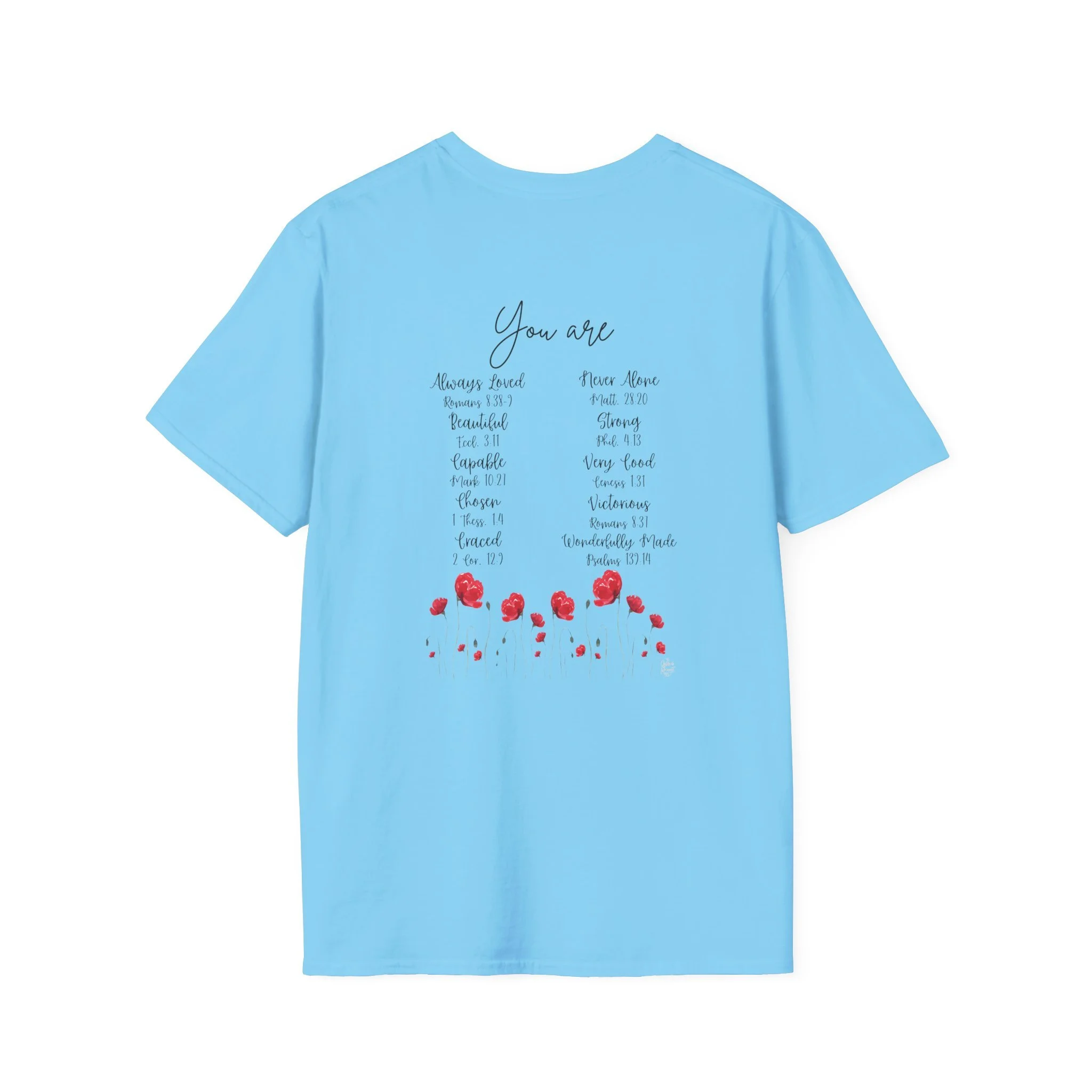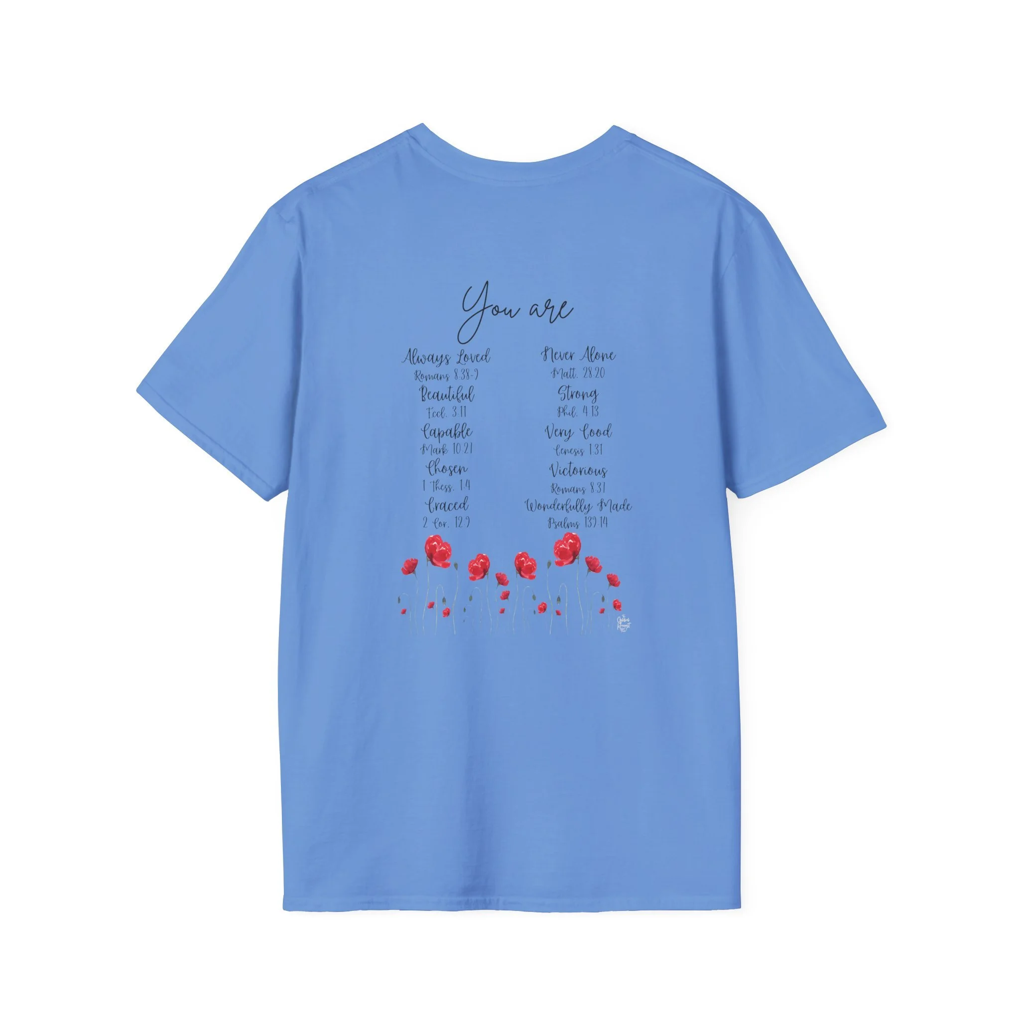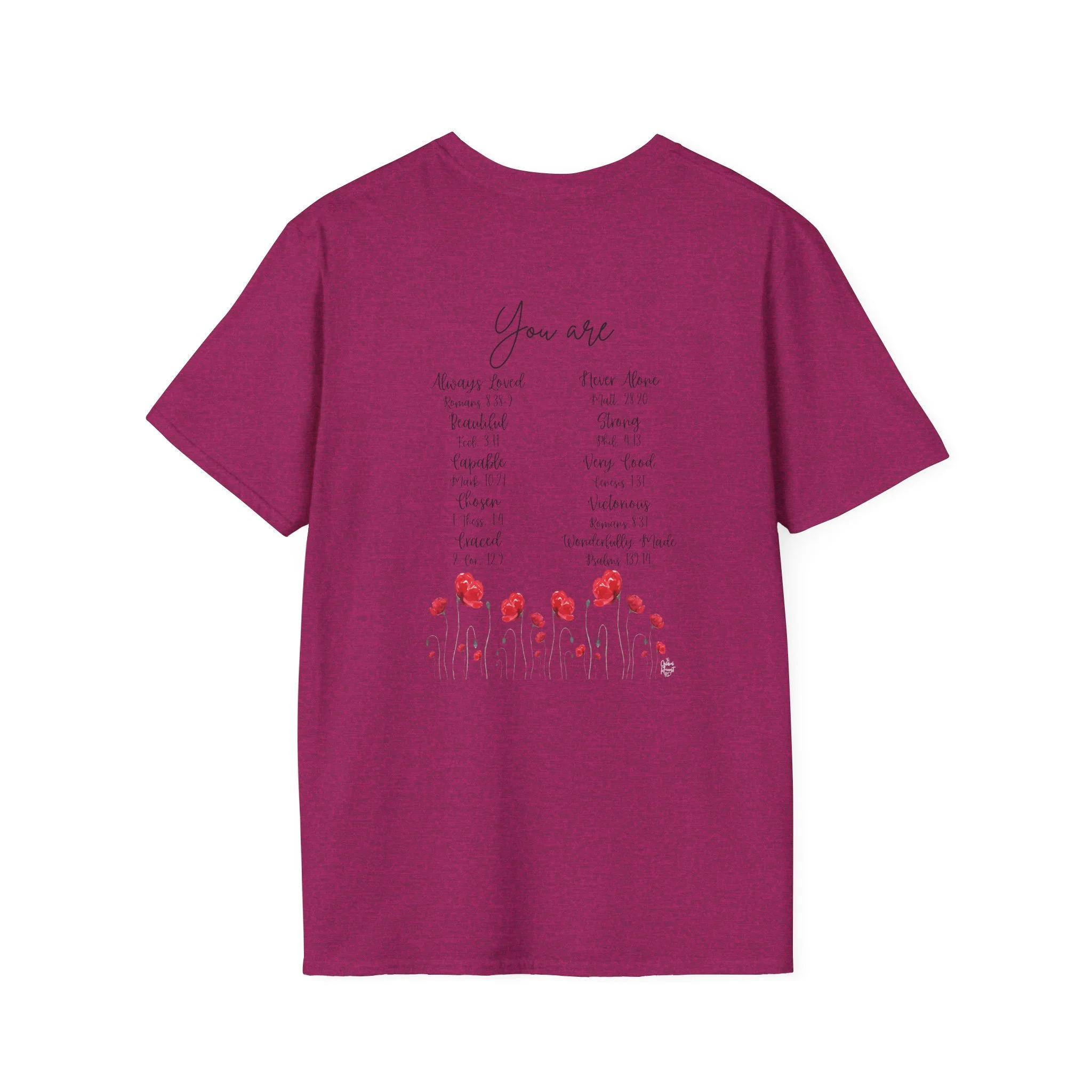 Soft, light, and wonderfully simple — this cotton tee carries a delicate watercolor of red poppies and fluttering butterflies across the chest. It feels airy on warm days and layers seamlessly under a cardigan when the breeze turns. Wear it to the farmers’ market, while sketching in the park, or tucked into jeans for a weekend walk; the design reads like a quiet moment outdoors, not loud but impossible to ignore. The crew neck and classic fit keep the silhouette familiar and easy to style, while the tear-away label and stabilized shoulders make it comfortable for long wear. This is for people who collect small bright things in their wardrobe and want a calm, floral accent that moves with them through everyday life.